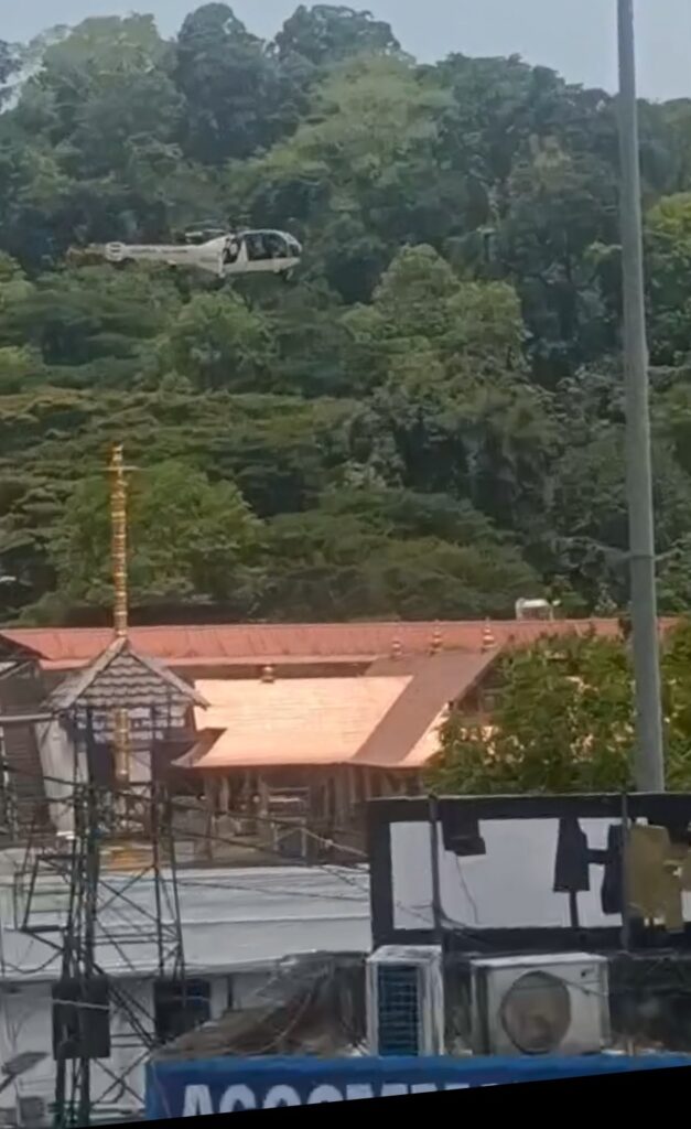 పెరియార్ టైగర్ రిజర్వ్ యొక్క దట్టమైన అడవుల మధ్యలో ఉన్న శబరిమల ఆలయ ధ్వజస్తంభానికి కేవలం కొన్ని మీటర్ల ఎత్తులో, గురువారం మధ్యాహ్నం 1.15 గంటల ప్రాంతంలో సీజీ 821 చేతక్ హెలికాప్టర్ ఎగురుతున్న దృశ్యాలను ఆలయ సిబ్బందిలో ఒకరు తీశారు.