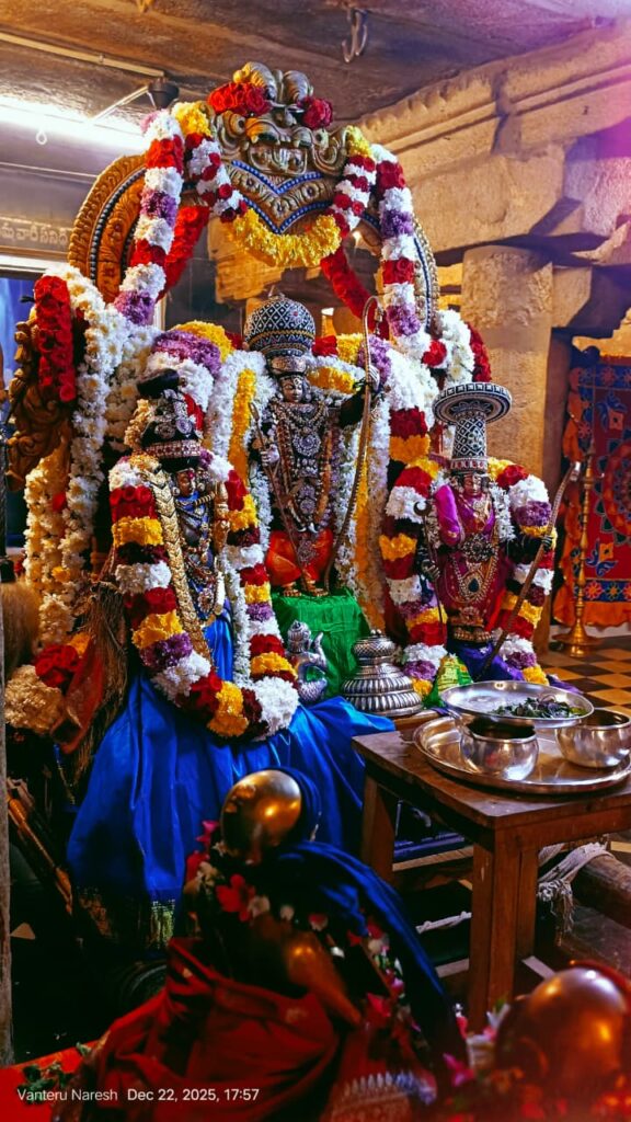 భారత్ డిజిటల్ న్యూస్ : అమరావతి: తల్పగిరి రంగనాధ స్వామి వారి దేవస్థానము, రంగనాయకులపేట, నెల్లూరు నందు ఈరోజు అనగా తేది.22.12.2025న పగల్ పత్తు ఉత్సవములలో భాగంగా సాయంత్రం 6.30గంIIలకు 3వ ఉత్సవము అయిన కోదండరామ అవతారములో శ్రీ శ్రీదేవి భూదేవి సమేతంగా శ్రీ రంగనాధ స్వామి వారు కనివిందు చేయడం జరిగినది. ఈ కార్యక్రమమునకు ఉభయదాత ‘’శ్రీ అనుమాలశెట్టి నారాయణరావు’’ వారు వ్యవహరించినారు. ఈ కార్యక్రమమునకు ఆలయ ఈఓ శ్రీ ఆళ్ళ శ్రీనివాస రెడ్డి గారు మరియు దేవస్థాన సిబ్బంది వారు కార్యక్రమము నందు పాల్గొనడం జరిగినది