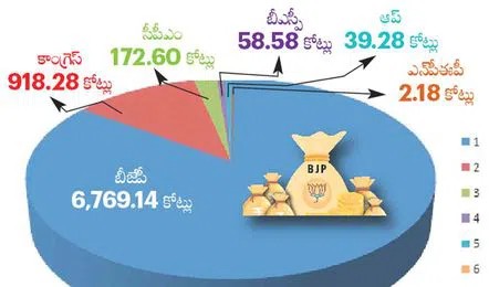 ..భారత్ న్యూస్ హైదరాబాద్….విరాళాల్లో 85% బీజేపీకే.. ఒక్క బీజేపీ ఆదాయమే రూ.6,769.14 కోట్లు