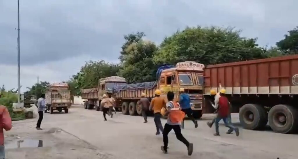బీహార్ కార్మికుల దాడిలో రెండు పోలీస్ వాహనాలు ధ్వంసం