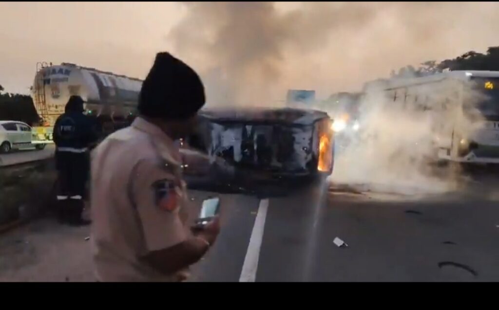 పెట్రోల్ లీకై చెలరేగిన మంటలు.. కారు పూర్తిగా దగ్ధం