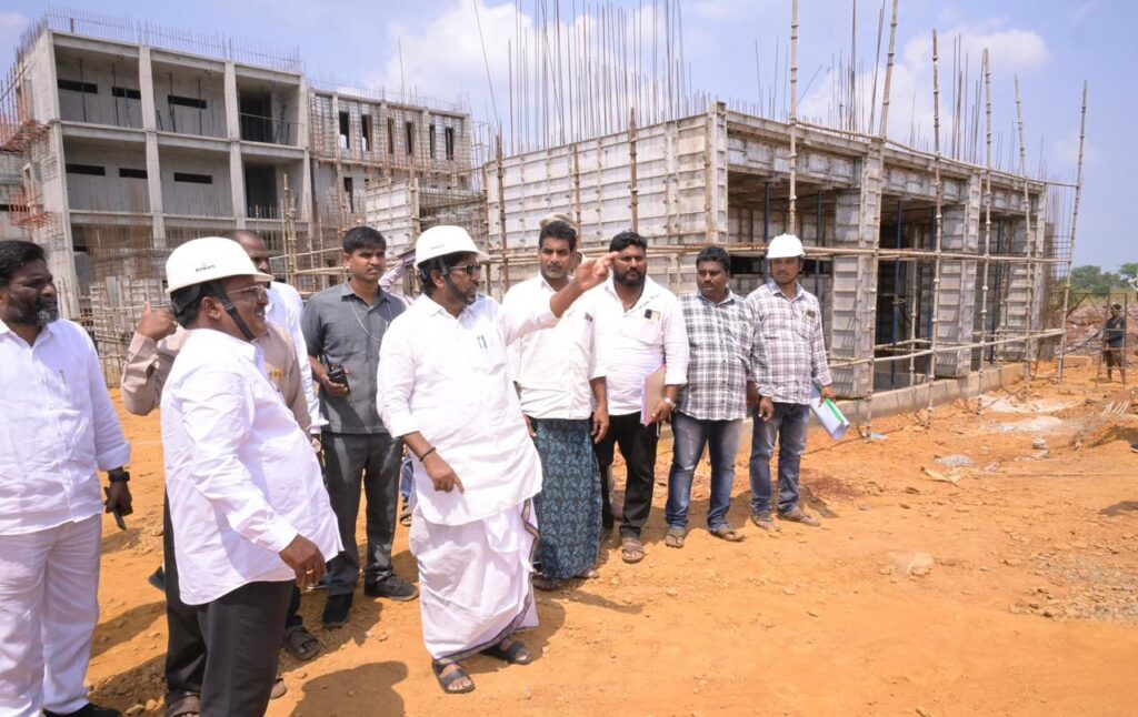 ఈ సందర్భంగా నిర్మాణ దశలో ఉన్న భవన సముదాయాలను స్వయంగా సందర్శించి పనుల ప్రగతిపై సమీక్ష నిర్వహించారు. నిర్మాణ పనులను మరింత వేగవంతం చేయాలని అధికారులకు, గుత్తేదారులకు స్పష్టమైన ఆదేశాలు జారీ చేశారు.