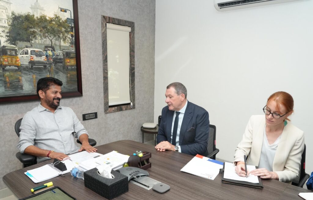 సమావేశంలో అలయన్స్ ఫ్రాన్స్ హైదరాబాద్ డైరెక్టర్ శ్రీమతి మౌద్ మిక్వా గారు, ఫ్రెంచ్ బ్యూరో అసిస్టెంట్ శ్రీమతి రోహిణి రెడ్డిపల్లి గారు, ప్రభుత్వ ఉన్నతాధికారులు పాల్గొన్నారు.