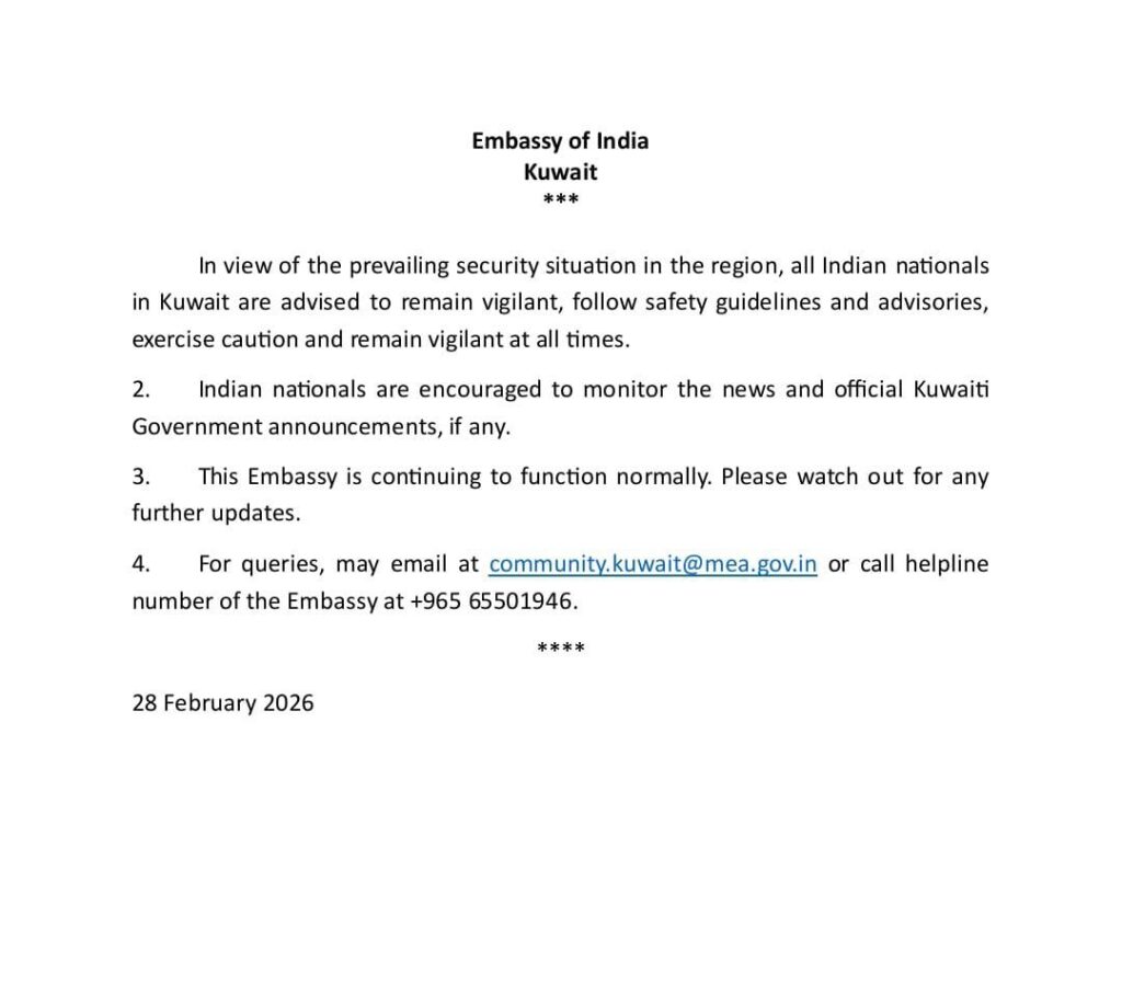 కువైట్లోని భారతీయులు అప్రమత్తంగా ఉండాలని భారత రాయబార కార్యాలయం విజ్ఞప్తి