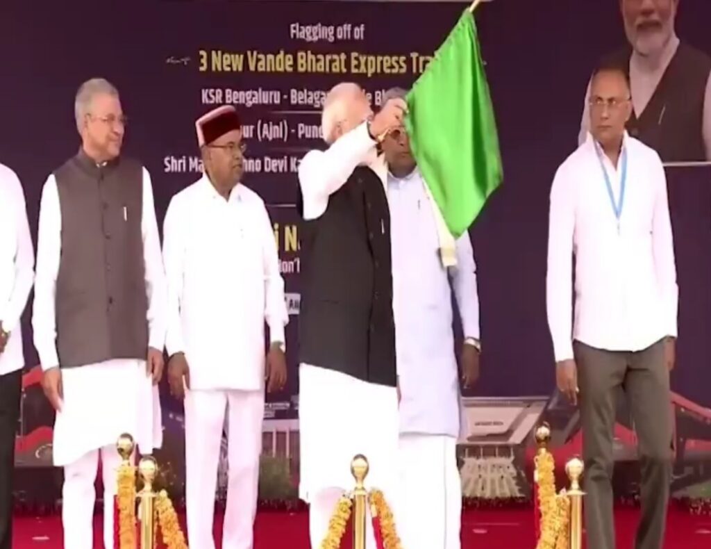 భారత్ న్యూస్ ఢిల్లీ…..ప్రధానమంత్రి Narendra Modi .. కర్ణాటక పర్యటనలో భాగంగా..బెంగళూరులోని కేఎస్ఆర్ రైల్వే స్టేషన్లో మూడు వందే భారత్ రైళ్లను ప్రారంభించారు.