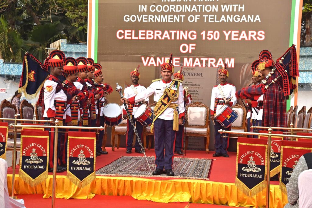 the national song ” Vande Mataram “, the Artillery Centre, Hyderabad under the aegis of HQ Southern Command successfully conducted a Military Band performance at the Lumbini Park, Hyderabad on 25 January 2026 as part of Indian Army’s initiative of conducting such grand displays at various locations across the country, including India Gate