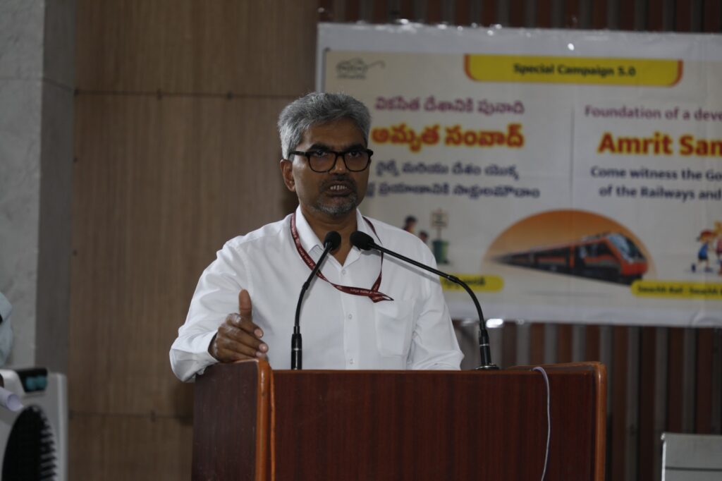 The Amrit Samvaad Programme, as a part of Special Campaign 5.0 was conducted today i.e., 4th October 2025 at Begumpet Railway Station. Shri Sanjay Kumar Srivastava, General Manager, South Central Railway interacted with passengers and rail users. Ms.lty Pandey, Principal Chief Commercial Manager, Dr. R. Gopalakrishnan, Divisional Railway Manager, Secunderabad Division and other senior officials also participated in the programme reinforcing the Railway’s commitment to public engagement and service improvement.