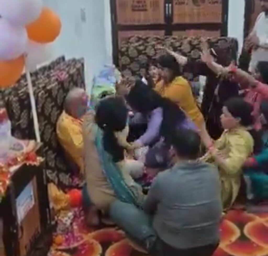 అందరూ చుట్టూ చేరి నాగిని డ్యాన్స్ వేస్తూ వీడిని ఆనందింప చేస్తే.. ఆశీర్వదిస్తాడంటా…