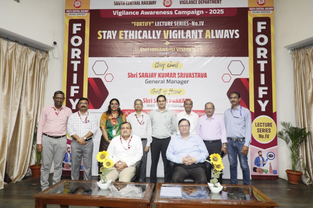 దక్షిణ మధ్య రైల్వే విజిలెన్స్ విభాగం ఈరోజు అనగా 2025 సెప్టెంబర్ 26న “విజిలెన్స్ అవేర్నెస్ వీక్ 2025” కి 3 నెలల ముందస్తు ప్రచారంలో భాగంగా, ఉపన్యాసా కార్యక్రమాన్ని నిర్వహించింది. విజిలెన్స్ బ్రాంచ్ “ఫోర్టిఫై లెక్చర్ సిరీస్” కార్యక్రమంలో భాగంగా ఇది నాలుగవ ఉపన్యాసం.
