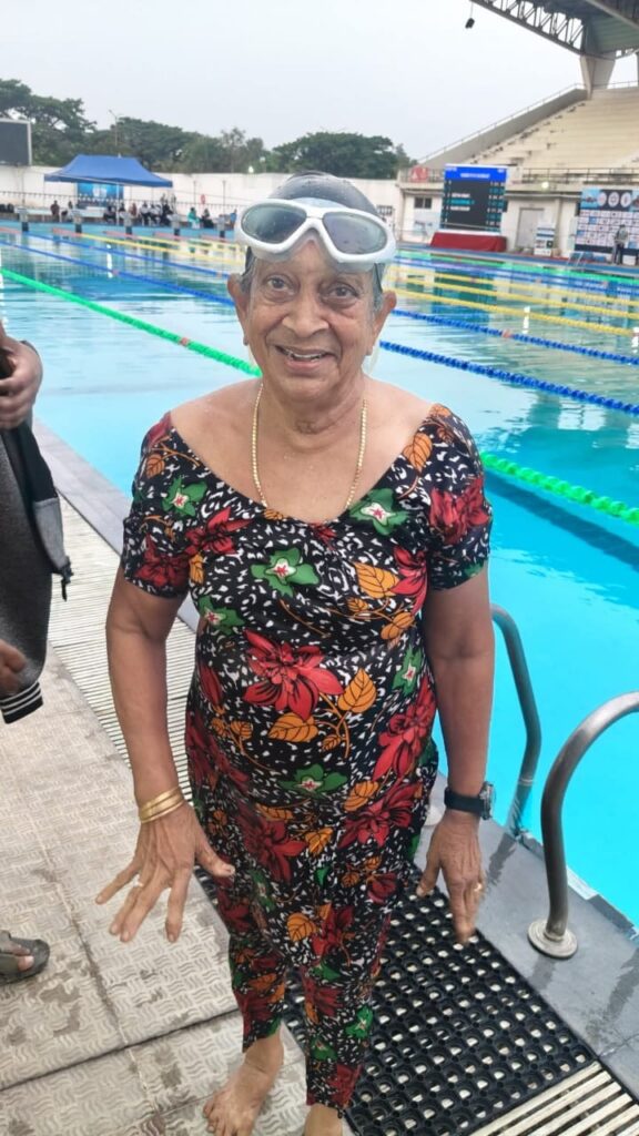 పంజాబ్ బామ్మ సులేఖా కౌర్ తో పోటీ పడి రజతం సాధించారు. ఈ రోజు 50 మీ back stroke లో