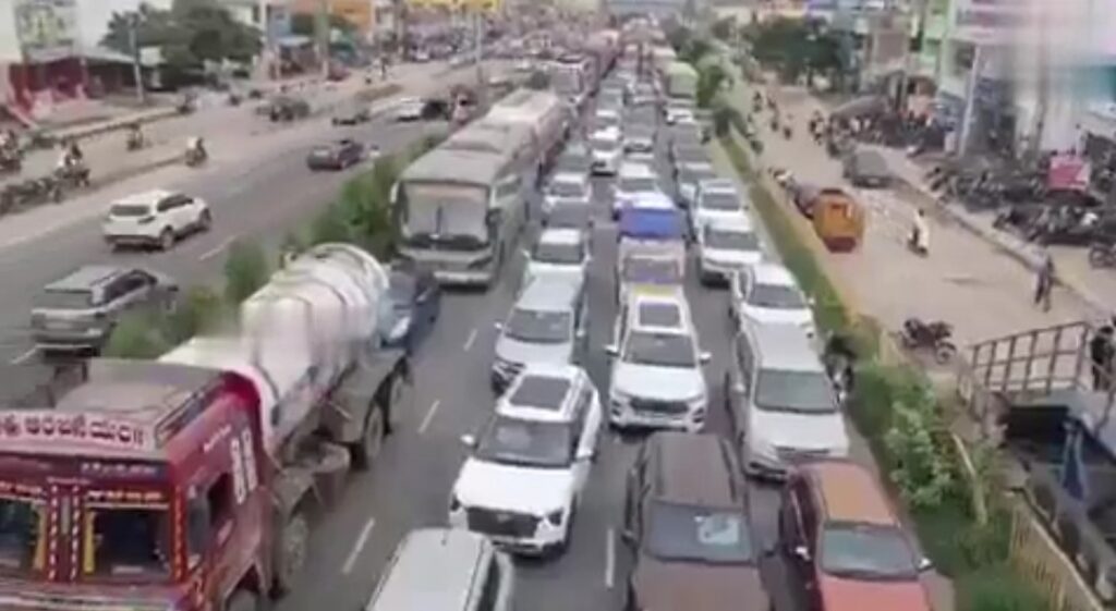 …భారత్ న్యూస్ హైదరాబాద్….హైదరాబాద్-విజయవాడ జాతీయ రహదారిపై భారీగా ట్రాఫిక్ జామ్ (వీడియో)