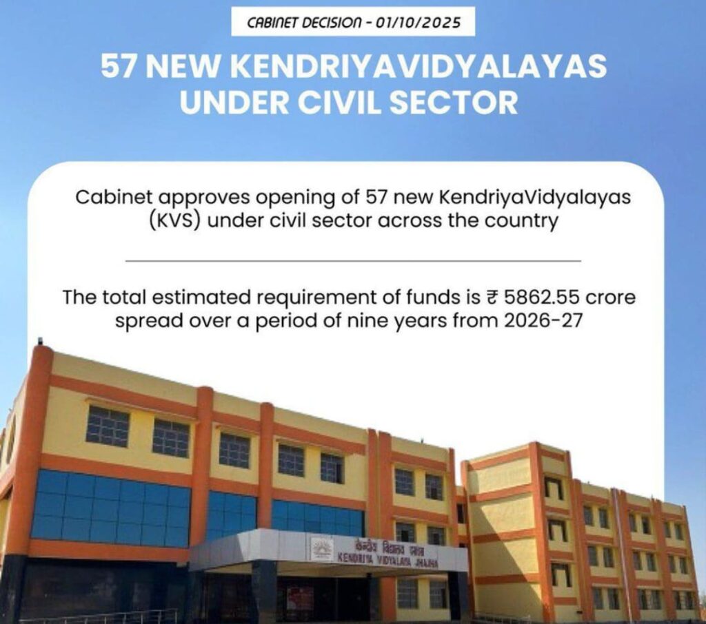 దేశ వ్యాప్తంగా 57 నూతన కేంద్రీయ విద్యాలయాల ఏర్పాటుకు ఆమోదం